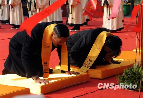 《孔子》剧组曲阜祭孔 周润发行叩拜礼(2)