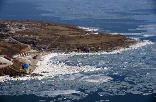 这是1月23日辽东湾最大岛屿——菊花岛附近海域由于潮水推拥形成的堆积冰。任勇 摄