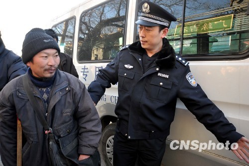 图:北京警方救助街头流浪乞讨人员(2)