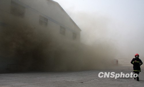 2010年1月29日,山东省枣庄市一家食品厂因电焊工在冷库内违章作业,引燃周围的易燃物品发生火灾,经过消防人员近3个小时的全力扑救,火势才得以控制。火灾没有造成人员伤亡,公安部门对违章作业人员进行了依法处理。中新社发 吉 喆 摄