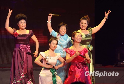 1月30日晚,2010年百姓迎新春大联欢晚会在河南郑东新区国际会展中心轩辕堂举行。“老家是河南--咱妈喊你回家看春晚”,表达了百姓的心声、愿望。图为演唱河南坠子的五姐妹。中新社发 吕学杰 摄