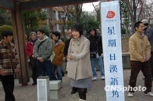 图为中国新闻社的孙冉在汉语角和参加者交流。中新社发 段跃中 摄