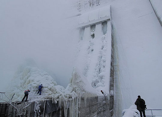 1月31日,俄罗斯哈卡斯,萨扬-舒申斯克水电站遭冰封。萨扬-舒申斯克水电站是俄罗斯最大的水电站,曾在去年8月发生水管爆裂事故,造成大量人员伤亡。