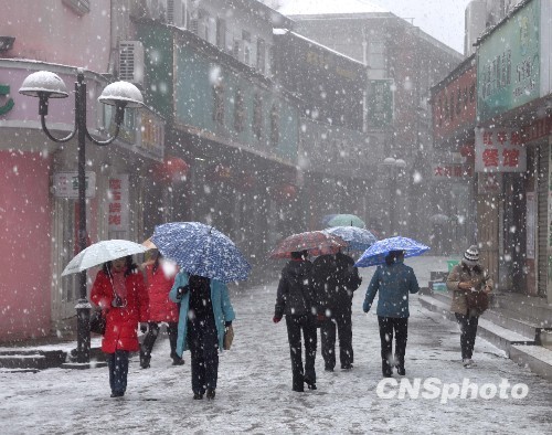 2月4日,江西庐山牯岭街头,行人冒着大雪行进。当日是立春节气,庐山迎来大雪。由于气温较高,庐山道路未出现严重的积雪及结冰现象。