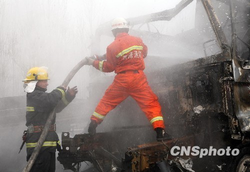图:山东菏泽日东高速发生连环撞引起火灾(4)