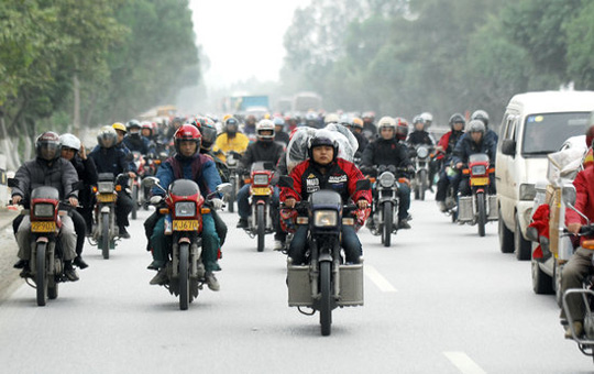 珠三角10万农民工组队骑摩托车返乡