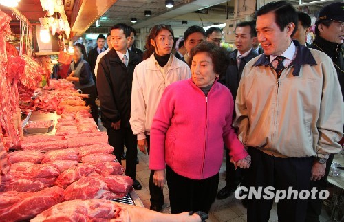 图为在郑氏鲜肉摊,秦妈妈买了一斤半排骨。中新社发 耿军 摄