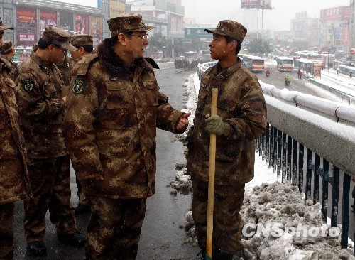 图:南京军区驻宁官兵紧急出动扫雪除冰(2)