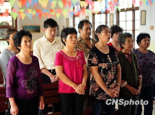 信奉基督教的印尼村民在教堂作礼拜。中新社发 蒙钟德 摄