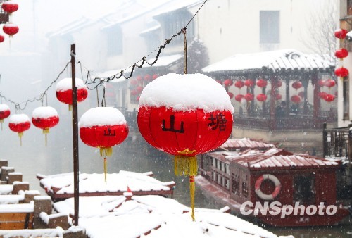 姑苏降瑞雪迎新春。中新社发 王建中 摄