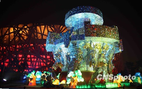 2010年春节期间,北京奥林匹克公园中心区内摆放的许多五彩斑斓的各式花灯,为北京虎年新春增添一道靓丽风景。