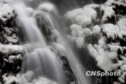 图:安徽黄山三江源头出现“冰瀑”奇观(2)