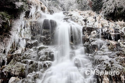 图:安徽黄山三江源头出现“冰瀑”奇观(3)