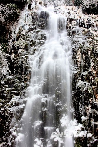 图:安徽黄山三江源头出现“冰瀑”奇观(4)