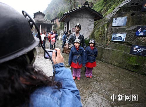 一位母亲正在为当“小矿工”的孩子拍照留念。作 者:刘忠俊