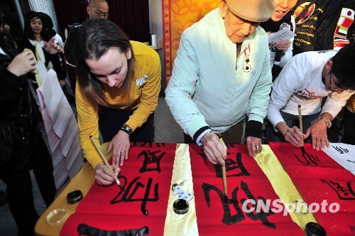 20多名访港“尼米兹”号的美军,19日到一护老院探访,并用广东话向长者拜年,有长者更教他们用毛笔写挥春。美国海军核动力航空母舰“尼米兹”号17日抵达香港水域,并进行为期4天的常规补给和休整。 中新社发 谭达明 摄