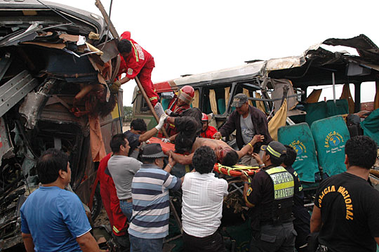 图:秘鲁北部发生严重车祸 造成近百人伤亡(2)