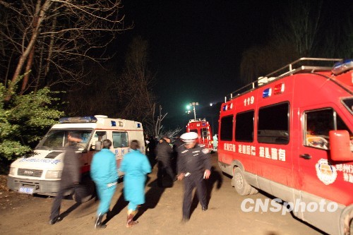 图为等候在现场的救援车辆和救援人员。中新社发 王中举 摄