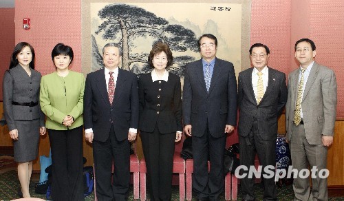 当地时间2月28日,率领“四海同春”艺术团正在纽约访问的国务院侨办副主任许又声(左五)在中国驻纽约总领事彭克玉(左三)陪同下,看望了著名美籍华人、被称为“美国航运巨子”的赵锡成博士(左六),以及美国前劳工部长赵小兰(左四)和妹妹赵安吉(左一 ),并和他们一家共进午餐,亲切叙谈。中新社发 魏晞 摄
