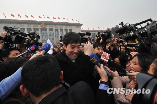 图:全国政协委员刘翔突破重围出席开幕式(2)