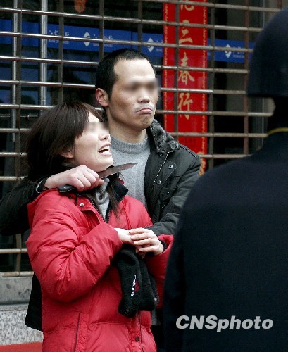 3月3日上午8时10分左右,无锡市永乐路江苏银行门前,发生一歹徒劫持一妇女作人质,与警方对峙。据了解,劫持歹徒为无锡本地人,年龄约40岁左右,服刑释放。事发后,市区公安刑警迅速赶到现场,并与歹徒展开周旋,劝说其放下尖刀,但歹徒置之不理,现场情况极险恶。9时10分左右,便衣警察乘歹徒不备之时迅速出击,控制住歹徒,解救了人质。前后持续约一小时。