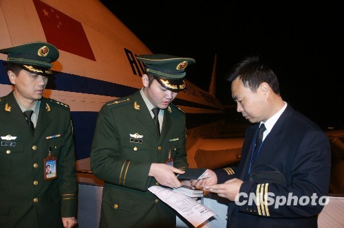 南京边防检查站开通“绿色通道”,为包机快速通关提供服务。中新社发 张璐 摄