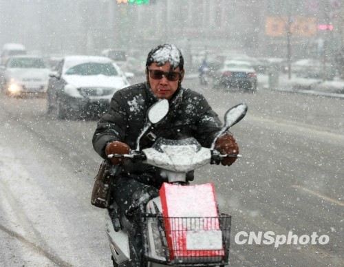 图:暴雪袭城 郑州市民出行受阻(3)