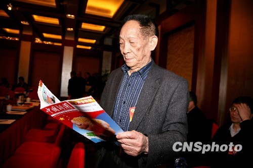 全国政协委员袁隆平关注《中国新闻》。中新社发 王保胜 摄