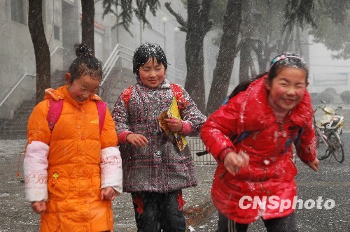 图为傍晚时,安徽巢湖忽然下起大雪,令出行的市民措手不及。中新社发 徐振华 摄