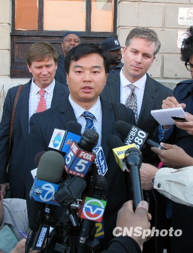 3月9日,美国新泽西州纽瓦克地方法院二度开审“吻瘫机场”的中国博士江海松案。走出法庭后,江海松则向公众发表声明“深刻地道歉”,并感谢他的律师、中国驻纽约总领事馆以及他身边的亲朋好友们对他的帮助。中新社发 魏晞 摄