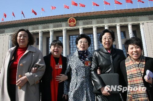 图为全国政协委员邓亚萍(右一)、李冬冬(中)、王平(左二)等委员兴高彩烈出席会议。中新社发 金立冬 摄