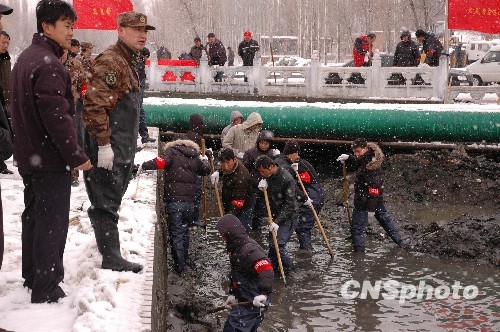 图:新疆塔城雪中进行全城抗洪应急演练(2)