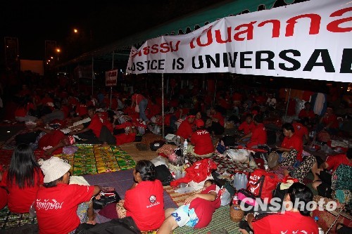 图:泰国近十万“红衫军”夜集曼谷示威(3)