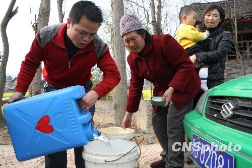 3月17日,贵州福泉市文明办组织120余名爱心司机成立福泉志愿者爱心送水车队,每天组织10余辆爱心车将100桶清洁泉水送往离市区较远干旱旱情重灾区福泉市谷汪、黎山、城厢等乡镇的边远山区村寨村民家中,使饮水困难户喝上清洁泉水。