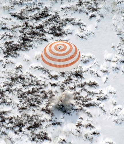 3月18日,俄罗斯飞行控制中心宣布搭载俄罗斯宇航员马克西姆·苏拉耶夫和美国宇航员杰弗里·威廉姆斯的“联盟TMA-16”载人飞船于当天下午在哈萨克斯坦境内预定地点着陆。