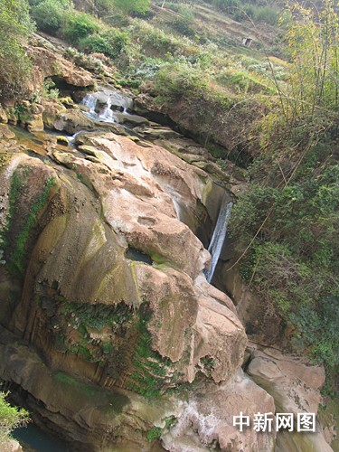 云南省正经历百年不遇的特大干旱天气,世界自然遗产石林景区景观水濒临干涸。图为,瀑布流经区域内岩石裸露,昔日壮观场景消失。