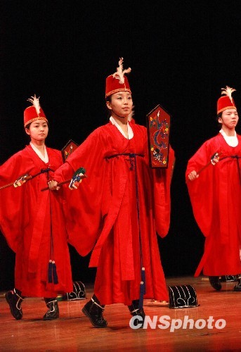 图为来自韩国的专业舞蹈艺术团在表演祭祀孔子舞蹈。中新社发 闫晓虹 摄