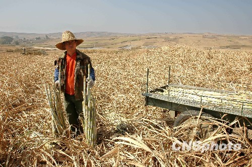 受百年一遇的干旱天气影响,云南省甘蔗种植区普遍受旱,甘蔗产量大幅下降,仅能满足糖厂生产需求的50%。云南常年甘蔗种植面积450余万亩,是全国第二大甘蔗糖业基地。图为干旱导致甘蔗品质大幅下降。中新社发 薛云 摄
