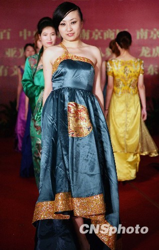 3月20日,一场以南京云锦为主题的时装展示在第二届中国南京婚庆文化博览会上举行。模特们现场展示的云锦时装让人们领略到传统与时尚融合的魅力。据介绍,距今已有1500多年历史的南京云锦被誉为“中华一绝、东方瑰宝”,古代曾是皇家御用品,2009年9月30日成功入选联合国教科文《世界人类非物质文化遗产代表作名录》。中新社发 钟山 摄