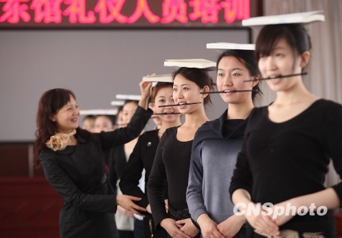 2010年3月23日,上海世博会山东馆礼仪人员培训正式开始。据了解,参加集训的18名候选礼仪人员是从山东大学、山东师范大学、山东艺术学院等高校选拔出来的,她们将接受形态、外事礼仪、世博会知识、外语等方面的培训。中新社发 龚辉 摄