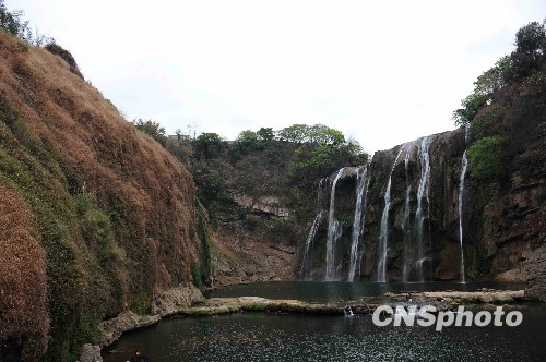 图为被“瘦身”的黄果树瀑布。中新社发 曹多然 摄