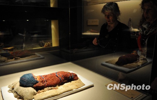 图为婴儿木乃伊“且末宝宝”,距今约2800年,婴儿年龄约8-10个月。中新社发 张炜 摄