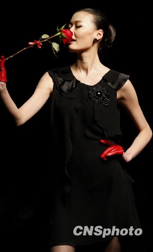 3月26日,在北京举行的中国国际时装周2010/2011秋冬系列发布会上,推出著名时装著名时装品牌敦奴《新女性姿态》专场。敦奴女装用生活休闲和职业休闲的设计风格诠释现代女性的时尚文化。所有风格既成熟又不失青春,尽情演绎都市女性那种风情万种又不失尊贵典雅的气质。图为模特展示敦奴《新女性姿态》作品。中新社发 钱兴强 摄