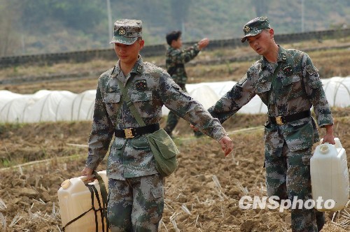 图:解放军出动抗旱 军队为民众浇灌禾苗(2)