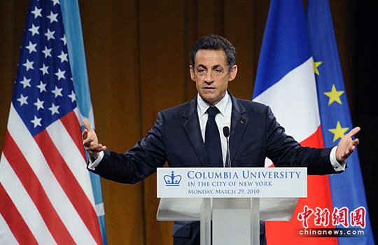 当地时间3月29日,法国总统萨科齐抵达纽约,开始对美国进行为期两天的访问,他将于当地时间30日与美国总统奥巴马在白宫举行会晤。