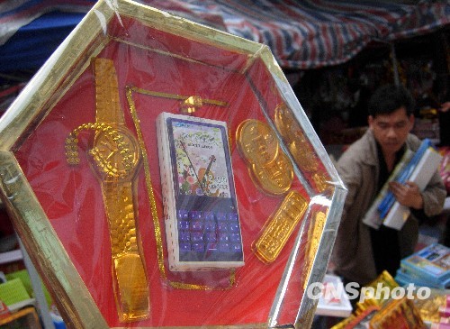 南宁市上海路清明祭品市场上摆放的一个祭祖“礼盒”。 中新社发 陆波岸 摄
