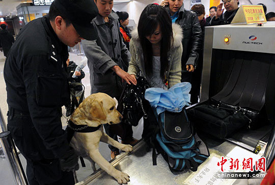 近日,北京警方交通安检力度升级,除了逢包必检外,警犬进入站台巡逻,安检员要增加手持安检仪,对包裹进行更细致地检查。同时,警员会在巡逻中加强对可疑人员的盘查。