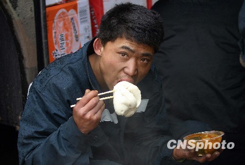 3月31日,“3·28”王家岭矿透水事故第4天排水工作仍在继续,已有2000人参与事故抢险。一个馒头加一碗汤水称为抢险人员的充饥食品,来自山西各地的矿工,为解救被困的工友夜以继日地奋战在抢险一线。