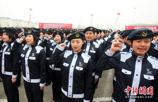 图为世博安保人员代表在现场宣誓。中新社发 汤彦俊 摄