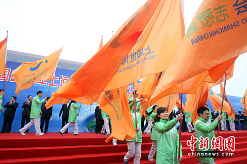 图为园区志愿者代表授旗仪式。中新社发 汤彦俊 摄